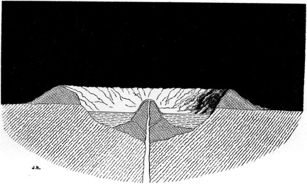 - Absence of Central Cones—Vast Diameters—Difficult of Explanation—Hooke’s Idea—Suggested Cause of True Circularity—Scrope’s Hypothesis of Terrestrial Tumescences—Rozet’s Tourbillonic Theory—Dana’s Ebullition Theory