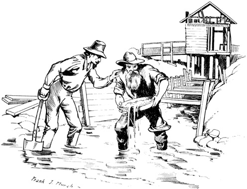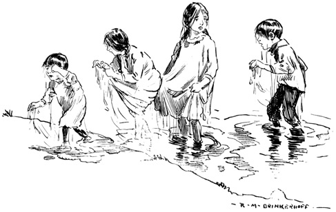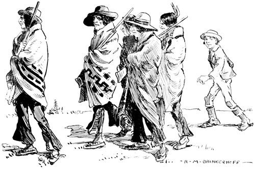 Those Indians were not at all like any we had seen before; their clothing, what little there was of it, consisted mostly of rabbit skins sewed together to form cloaks. To my mind they resembled more the Negroes than the Indians; but father said, save for their inclination to steal anything upon which they could lay their hands, that we need have no fear whatever regarding them, because they were known to be peaceable. The men were armed only with bows and arrows and seemed to have great fear of a gun or a pistol.