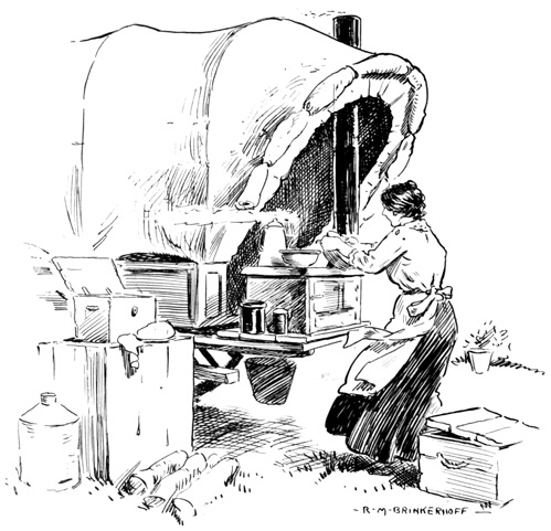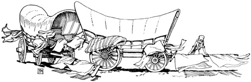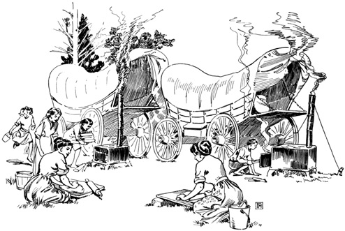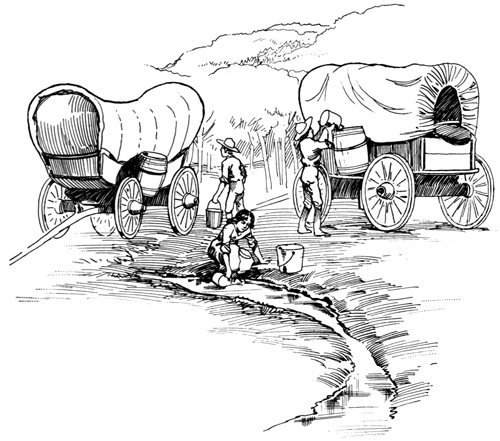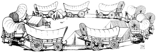 Having drunk our fill, Ellen and I went back to the wagon, where we ate heartily of corn bread, and then laid ourselves down to sleep, while the men and boys were bringing the teams into a circle to form a corral. [125]