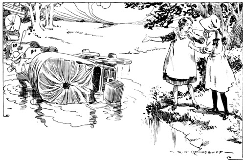She leaped out of the wagon, we two girls following, and, running hurriedly, we went to where the men, boys, and animals had gathered in a group.