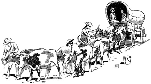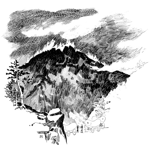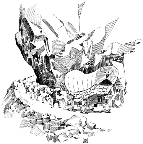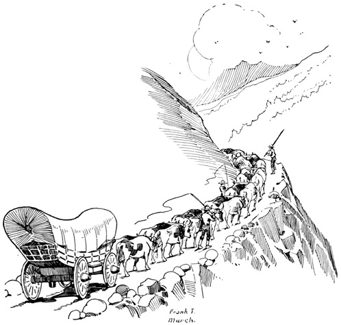 In due time we came to that point in the trail where we were forced to march directly over the face of the mountains. Here our fathers found the way so difficult that once more the teams were doubled up, twelve or fifteen yoke of cattle being put on one wagon, and, after hauling the heavy load to the summit of the range, driven back to get another.