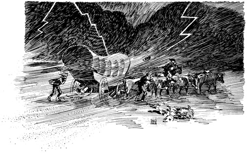 Then came a day in August when, after an unusually wearisome march, we suddenly overtook two emigrant wagons in which were fourteen people who had come from Missouri.