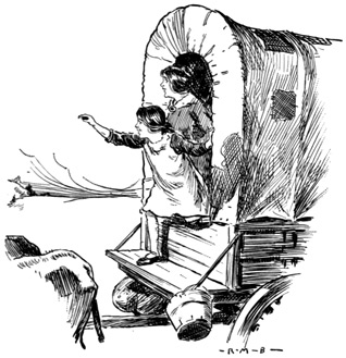 Just at sunset, one of the men who was standing guard over the cows shouted that a wild beast was creeping up on us from a thicket a short distance away, to the right of where father's wagon stood.