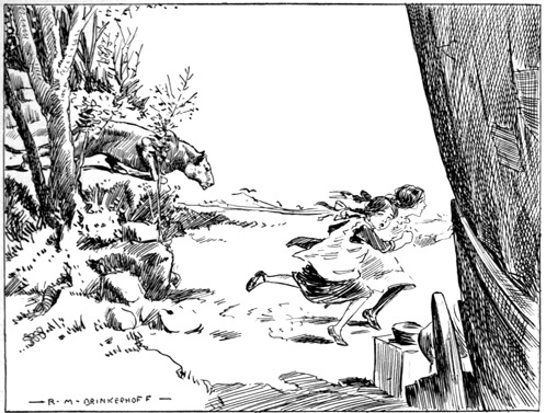 Looking up quickly, I saw a huge panther crawling, [131] as you might say, much as a cat approaches a mouse, and it seemed to me that he was making ready to spring directly upon us girls.