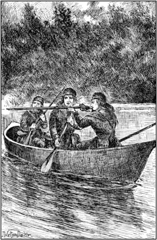 "So I guessed. I left my canoe over yonder, an' took to the shore partly to find somethin' in the way of meat, and partly to have a look around."