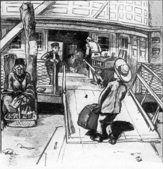 With his bundles in his hands he stumbled down through the pasture, following the course of the brook, until he arrived at a little stone pier, at the head of which could be seen the old schooner which had been made ready for a fishing cruise down the coast.