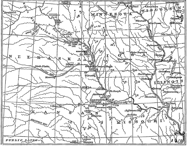 | Plate | XXX.— | Map showing the migrations of the Omahas and cognate tribes | 212 |