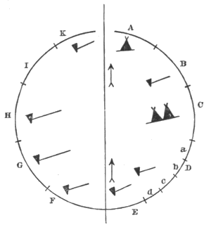 | 25.— | Showing positions of the long tent, the pole, and rows of "ʇa" within the tribal circle | 295 | |
