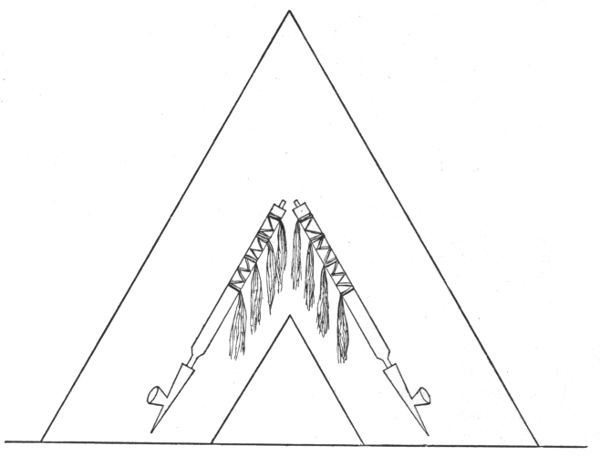 12 These directors were not necessarily Iñke-sabě men. The wacabe and pipe were always abandoned when the people were about to return home. The order of ceremonies varied. Sometimes the sacred pole was anointed after the first herd of buffaloes had been surrounded. In that case the abandonment of the wacabe and pipe was postponed awhile. Sometimes they were abandoned before the pole was anointed; and sometimes they were retained till the end of the Hede-watci. They were abandoned during the day. The pipe was fastened across the middle of the wacabe, which was stuck into the ground on a hill.