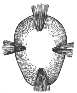 9 Frank La Flèche said that he had seen three heads of wajïñga[p]a on one pipe, and that the number varied from one to six. There was no part of the neck of the bird, and the lower mandible was removed. In this respect only the above figure does not represent the Omaha pipe.