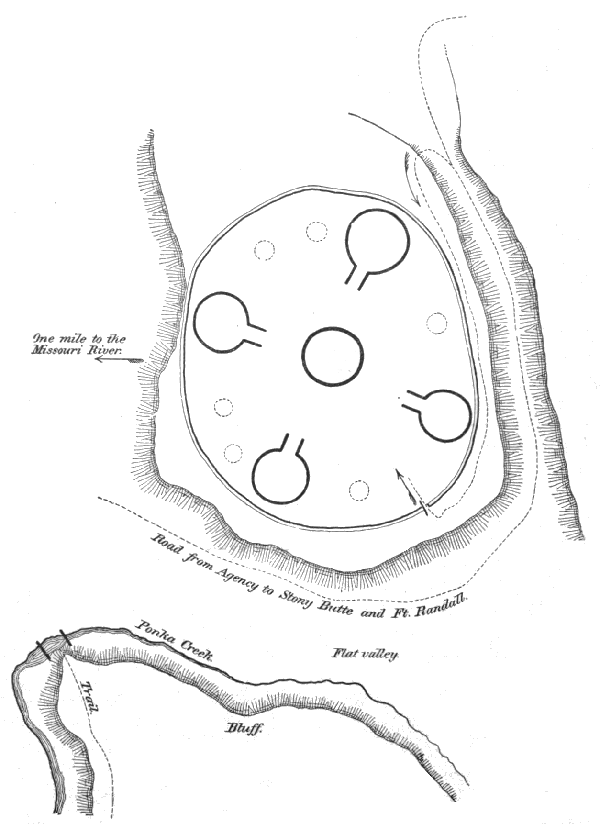 15 This word "ujeʇi" appears to be the Dakota "otceti," fire-place, expressed in Omaha notation. As the household fire-place is in the center of the lodge, so the tribal fire-place was in the center of the tribal circle.