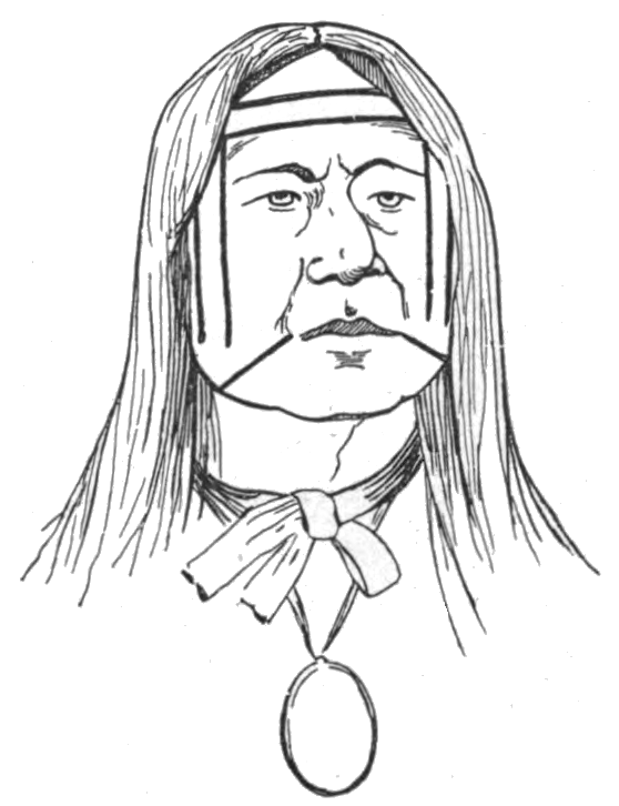 11 The hañge ʞi`anze for the child in the calumet dance differs somewhat from that used by the chiefs and other adults. In the former the stripes next the mouth are wanting, and, instead, is painted the stripe down the nose.