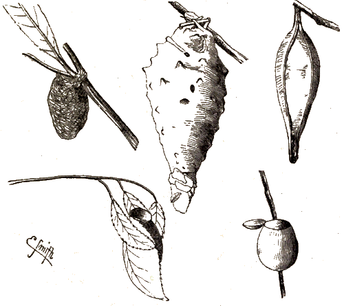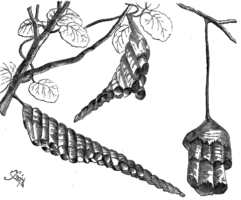 The proprietors of this interesting work having felt that much additional knowledge of the subject has been obtained since the book was written, have asked me to supply characteristic examples of Insect Architecture which were not to be found in its pages. I have accordingly added a considerable number of such examples, in most cases accompanied by figures drawn from the specimens described. I have not been at liberty to alter or expunge, and am not, therefore, responsible for any portion of the letterpress except those passages which are enclosed in brackets [ ]. Some of the specimens from which the figures have been drawn are in my own collection, but the greater part are to be found in the British Museum.