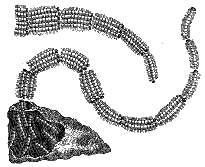 [FH] “——L’un des bouts de ces premiers fils, afin que le vent ou un courant d’air pousse l’autre extrémité de l’un d’eux au de là de l’obstacle.”—Dict. Classique d’Hist. Nat., vol. i. p. 510.