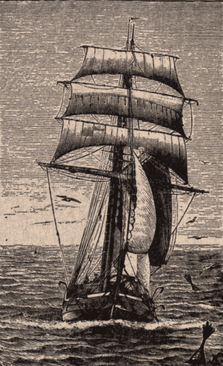For six hours the chase continued, with no change in the position of the ships. The "President," laden with all the stores[Pg 304] for her cruise, was deep and sluggish in the water, and it was only by vigorous efforts that she kept her distance from her pursuers. At length, about noon, the wind became light and baffling. The "Majestic" was now falling astern, but the "Endymion" began to gain rapidly. All hands on board the "President" were busy lightening the ship, starting the water, cutting away the anchors, and throwing overboard provisions, cables, spare spars, boats,—everything, in short, that could be got at,—while the sails were kept wet from the royals down. The uncertain wind now blew only for the enemy; the "Endymion" had a good breeze, while it fell light upon the sails of the "President." At five o'clock the English frigate got a good position on the "President's" quarter, where none of Decatur's guns could be brought to bear on her. Still she did not close, preferring to yaw from time to time so that her broadside would bear, and then resume the chase, rather than risk anything by a close action.