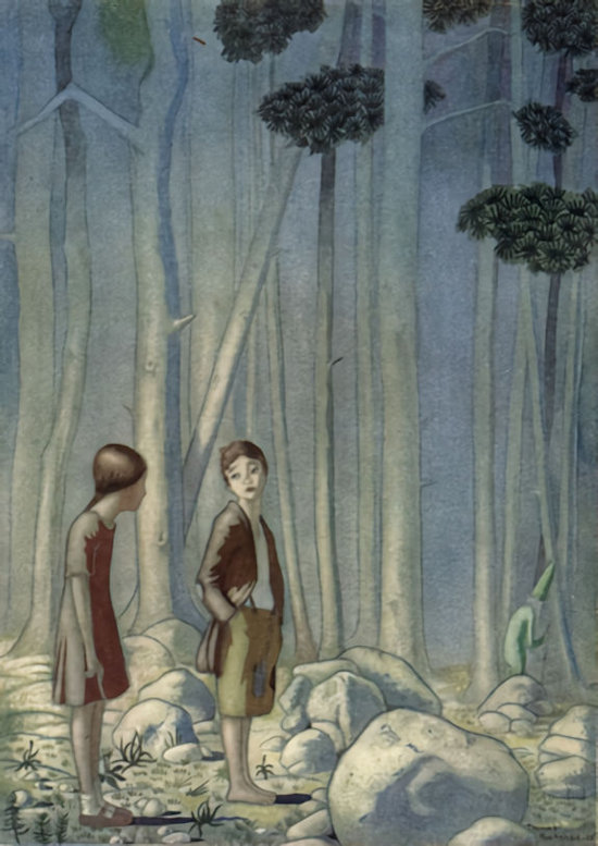 The children grew in grace and comeliness. At first the little boy was short and fat and the little girl was long and thin, then the little girl became round and chubby while the little boy grew lanky and wiry. This was because the little girl used to sit very quiet and be good and the little boy used not.