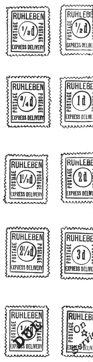 | PAPER MONEY USED IN PRISON CAMPS | POSTAGE STAMPS ISSUED AT RUHLEBEN PRISON CAMP. USED BY PRISONERS WRITING TO EACH OTHER IN THE CAMP. |
