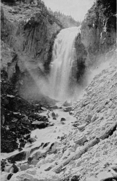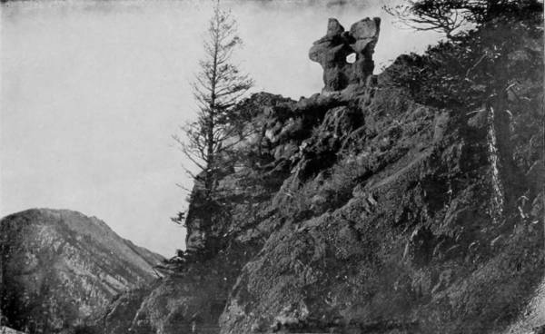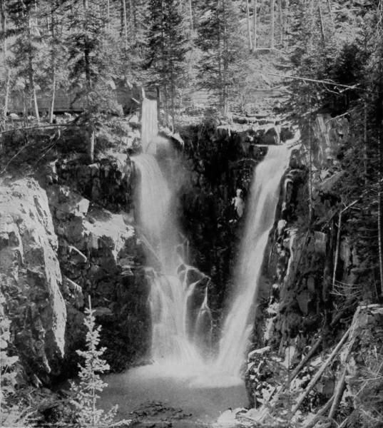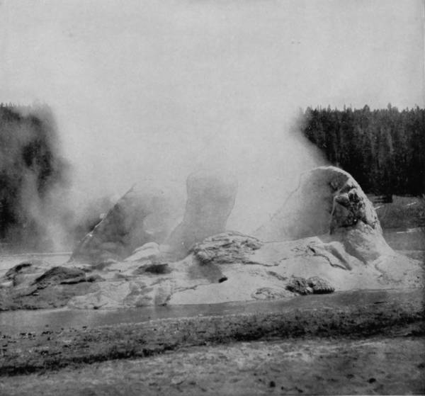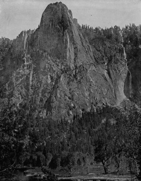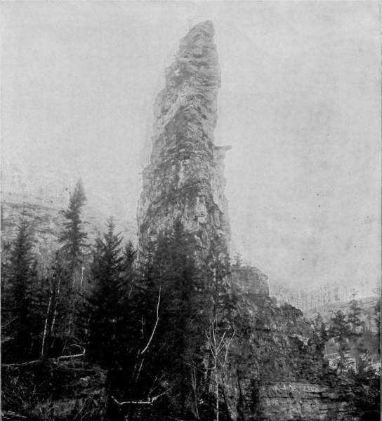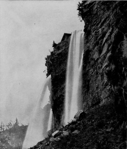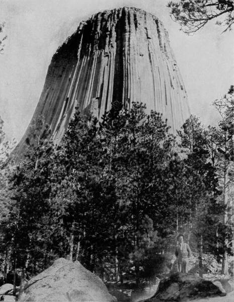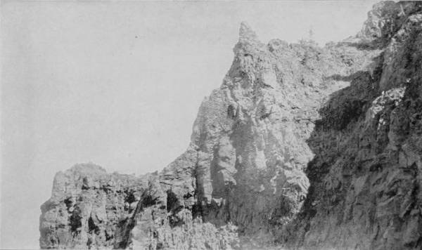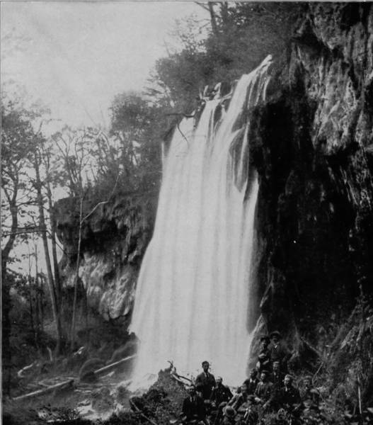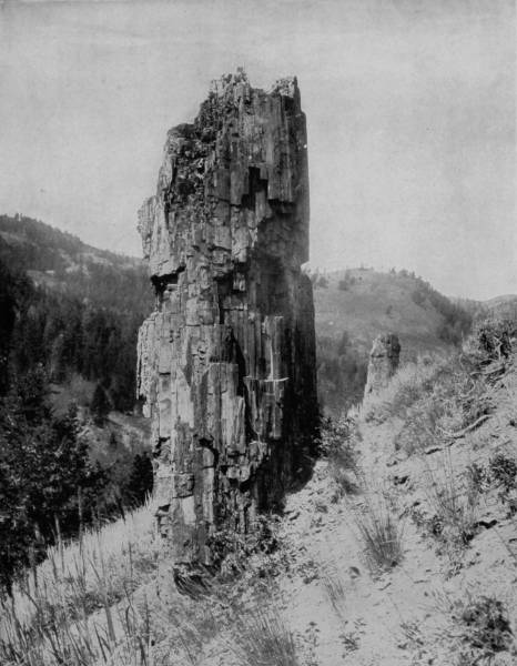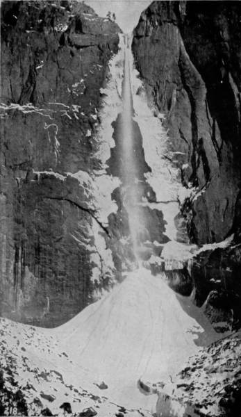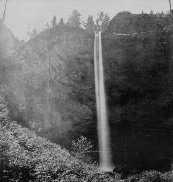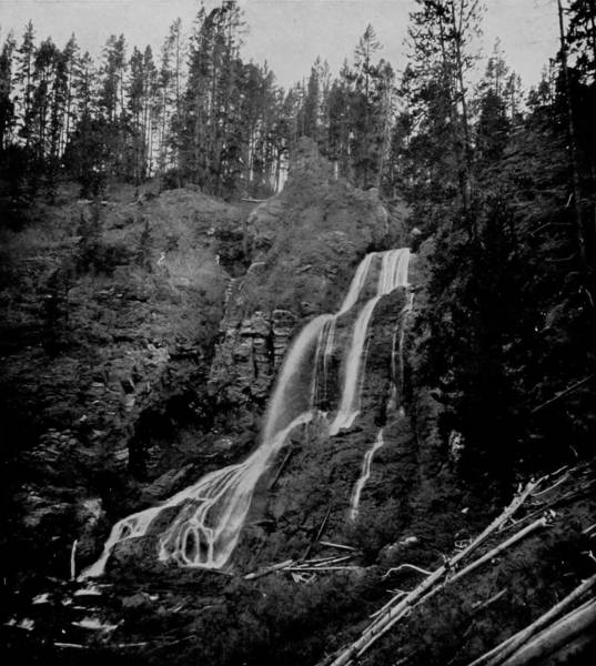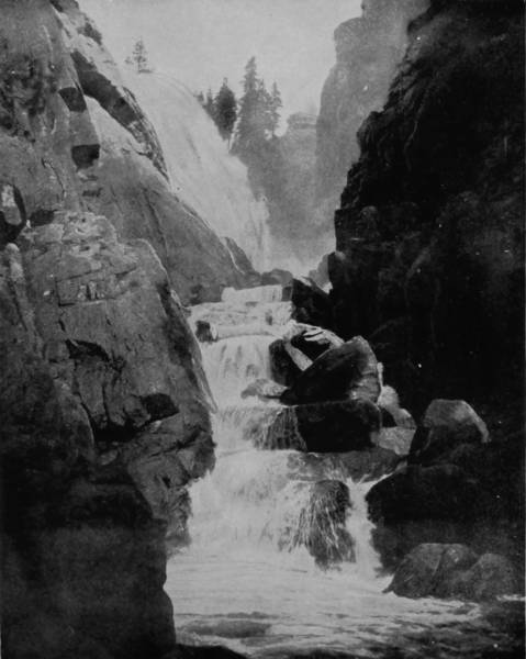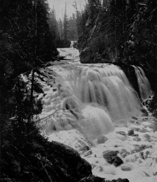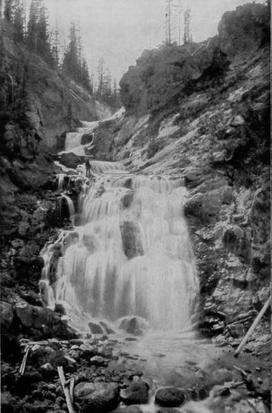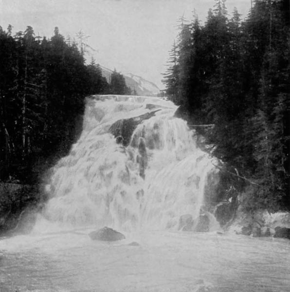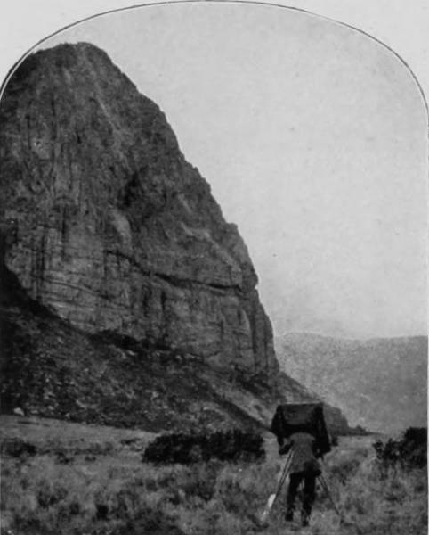 Some weeks were spent traveling off the line of road among the ruined villages of the Cliff-Dwellers, and in photographing the more rugged scenery of the Rio Grande River. Then we continued our journey westward over the Atlantic and Pacific and the Southern Pacific Railroads to California, where nearly three months were spent among the towns, Yosemite Valley, Big Trees and mountains of that summer-land. On the appearance of spring we traveled north by way of the California and Oregon Railroad, still making side trips by stage-coach and wagon, to Portland, from which point excursions were made up the Columbia and Willamette Rivers. At Victoria, British Columbia, we took steamer for Alaska, and 13returning we passed through the Cascade Range over the Northern Pacific, working our way back east. But we continued to make detours a long way off the main line of road, thus visiting the Falls of the Missouri, the Black Hills, the Custer battle-field, Devil’s Tower, and Yellowstone National Park, in which latter wonderland we spent two weeks photographing its scenery and extraordinary formations.
