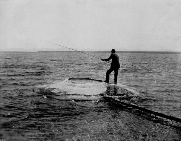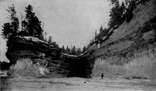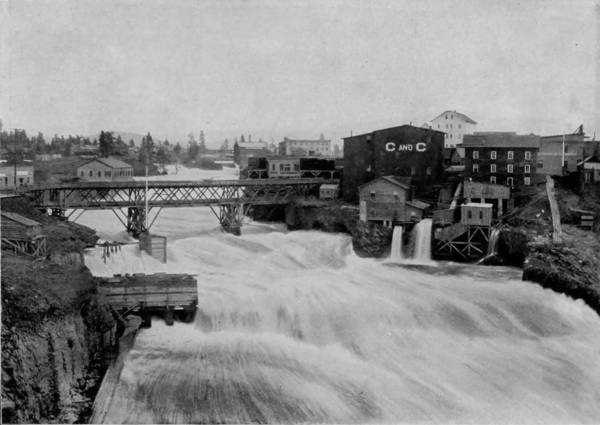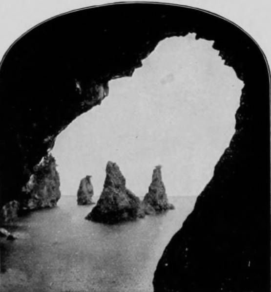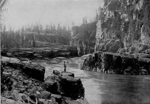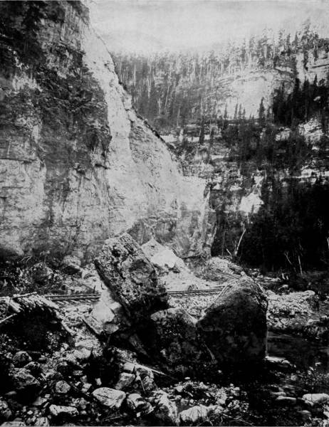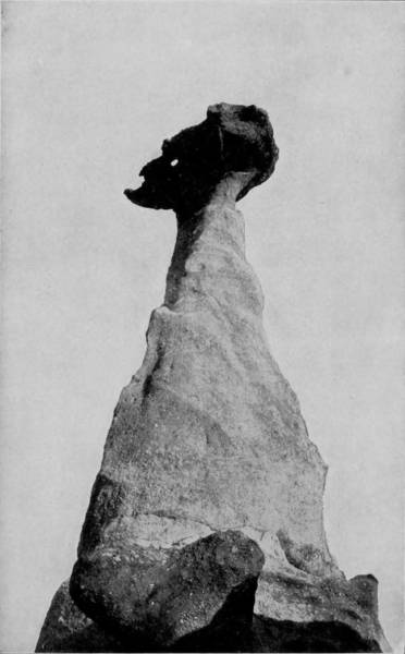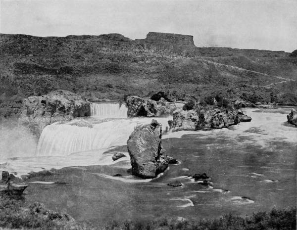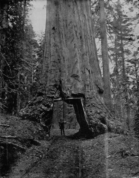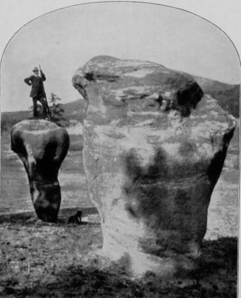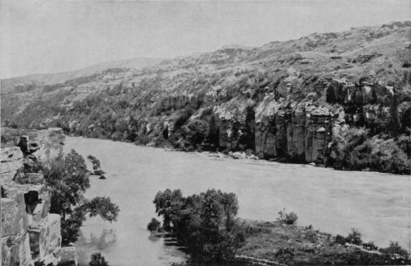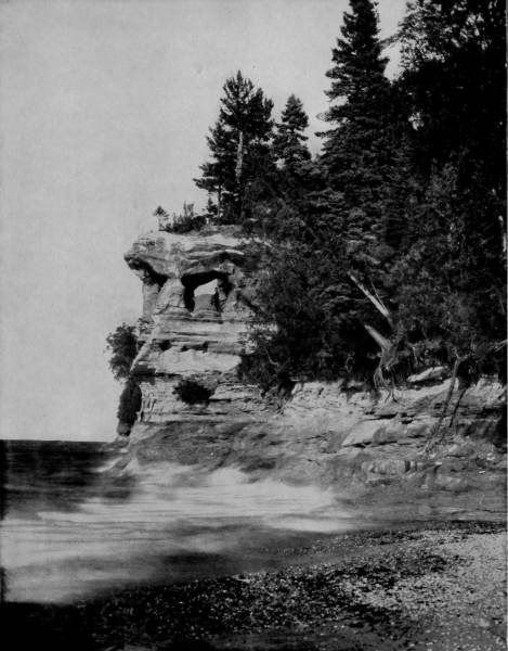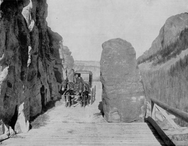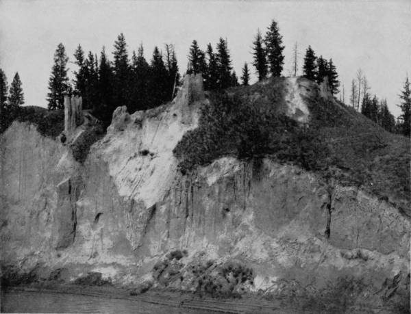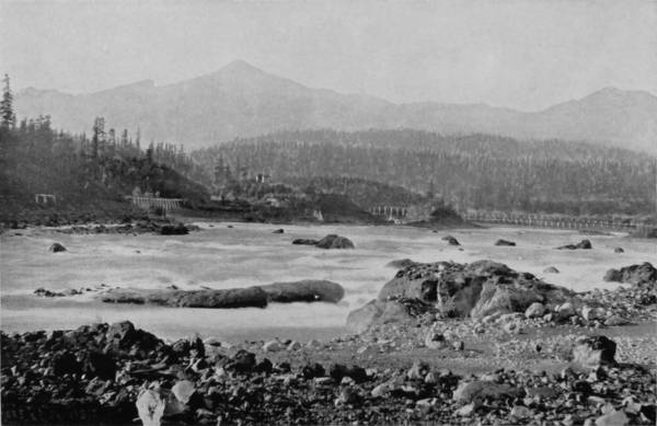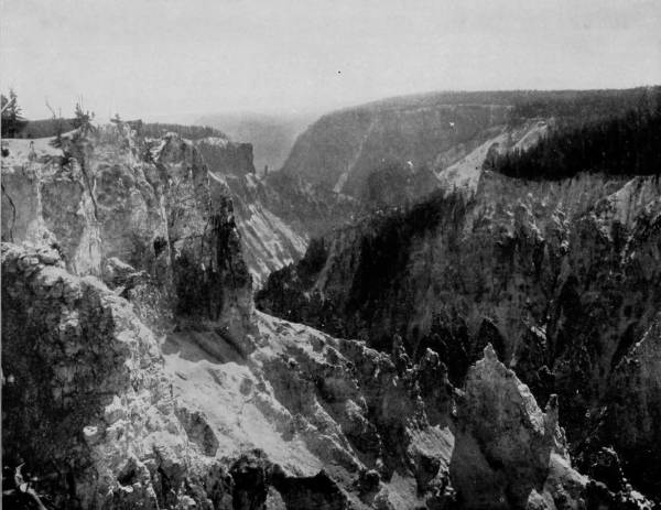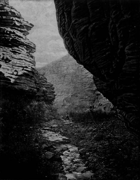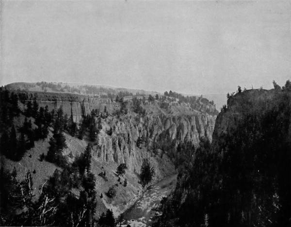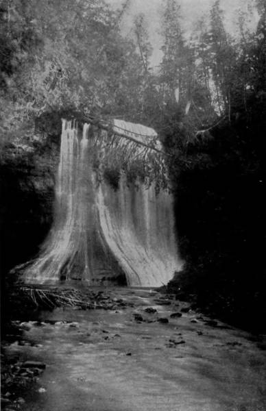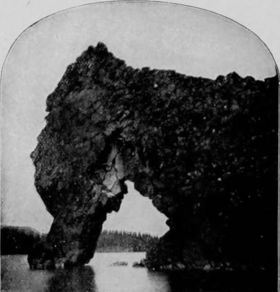 Some weeks were spent traveling off the line of road among the ruined villages of the Cliff-Dwellers, and in photographing the more rugged scenery of the Rio Grande River. Then we continued our journey westward over the Atlantic and Pacific and the Southern Pacific Railroads to California, where nearly three months were spent among the towns, Yosemite Valley, Big Trees and mountains of that summer-land. On the appearance of spring we traveled north by way of the California and Oregon Railroad, still making side trips by stage-coach and wagon, to Portland, from which point excursions were made up the Columbia and Willamette Rivers. At Victoria, British Columbia, we took steamer for Alaska, and 13returning we passed through the Cascade Range over the Northern Pacific, working our way back east. But we continued to make detours a long way off the main line of road, thus visiting the Falls of the Missouri, the Black Hills, the Custer battle-field, Devil’s Tower, and Yellowstone National Park, in which latter wonderland we spent two weeks photographing its scenery and extraordinary formations.