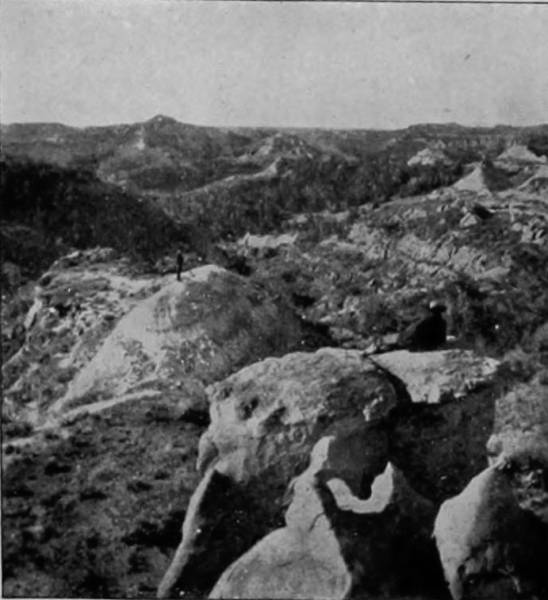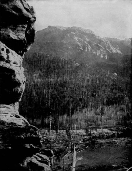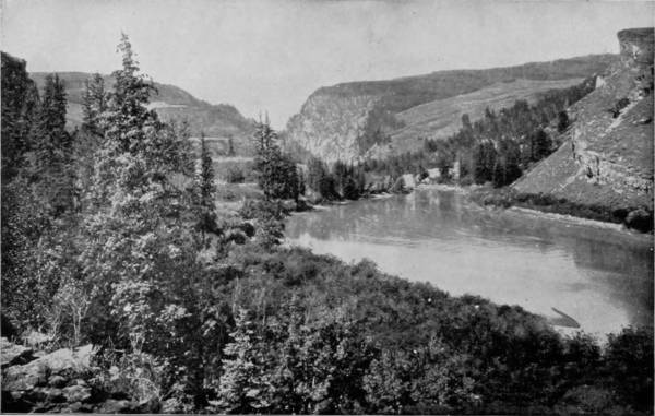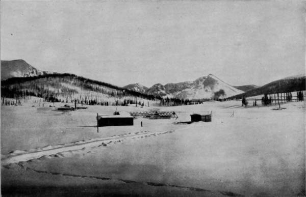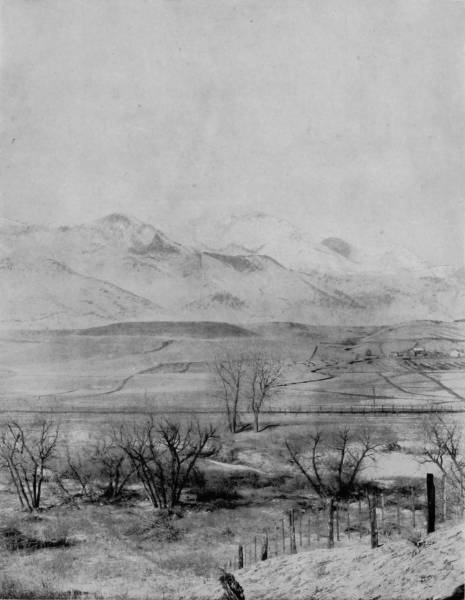 From Ferguson’s ranch there is a lovely prospect of Mummy range, with its conspicuous peaks, aglow with the soft colors of sunset in the evening, and mist-crowned in the early hours of the day. On the west are the Front and Rabbit Ear ranges, whose inaccessible heights run up so sharply to where storms have their breeding places, that they are browned by exposure and look inexpressibly bleak. Here, on these wild peaks, safe from human foes, bear and mountain sheep have 29their habitations, and the caterwaul of the puma rings out upon the air of lofty desolation as a warning to those who would attempt to gain their savage haunts.