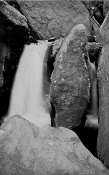 The temptation is very great to step aside into Estes Park, and explore Long’s Peak, which, though thirty-six miles distant, looms up in the clear atmosphere like a frosty-crowned giant almost near enough to speak to. But the rest of our party have preceded us and are no doubt in need of photographic supplies, so we hurry on, pausing only long enough to take a snap-shot at Boulder Falls. Reaching Fort Collins, we had the good fortune to find the others of our party awaiting us. They had made an extensive trip through Estes Park, and had a splendid lot of views as a reward for their labors. It was fortunate, therefore, that we did not stop, for we could have done no more than duplicate their work, and repeated the experiences which they reported to me substantially as follows:
