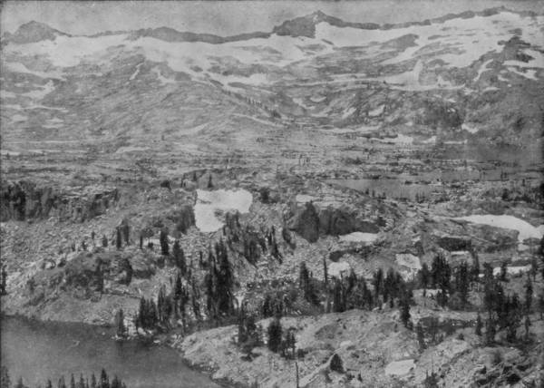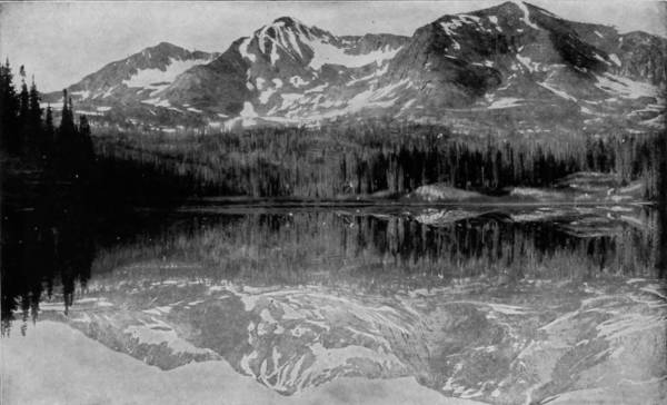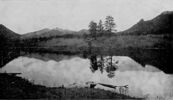 As they descended on the northeastern side, suddenly their sight was arrested by a lake slumbering in a little basin that had been scooped out of the granite sides of the mountain. It is almost immediately under the vertical cliffs, and so clear that the observer seems to look through it, as he would through a looking-glass, upon great walls which appear below, but are in reality reflections of the precipice examined when making the ascent. Lily Mountain was in bold outline on the right, where reposed another lake of somewhat greater size, whose water appeared to feed a stream that ran gamboling down a deep gorge into the plain which it nourished.
