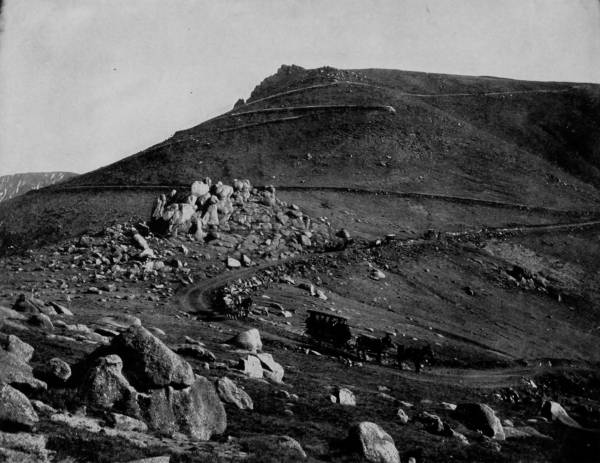 Returning east a distance of twenty miles, a junction is reached at Fork’s Creek, where another branch of the Union Pacific leads to Central City and Black Hawk. Here a marvelous thing is to be seen: The two towns are only a mile apart, measured by a straight line, yet so fearfully rugged is the territory to be traversed that the distance by rail between the places is four miles, and this interval is covered by means of a “Switch Back,” so called because of the tortuous route and the extraordinary grades. All along this vicinity are famous mines, and a wealth of mining machinery, that converts the country into a maze of industry, and the mountains into smoking mills and cornucopias of silver. In this mountainous region all roads seem to radiate from Denver, and hence to reach other charming scenery by means of our camera car, it was necessary to return again for a trip to Gunnison, which is on the South Park Branch. But in order to facilitate our work it was decided to divide our party, so that one photographer might proceed to Gunnison, while the other two took the northwest route to Estes and Middle Park, where a larger amount of work was to be done, and which could be reached only by stage.