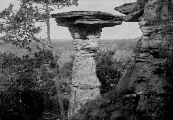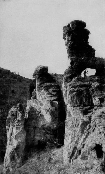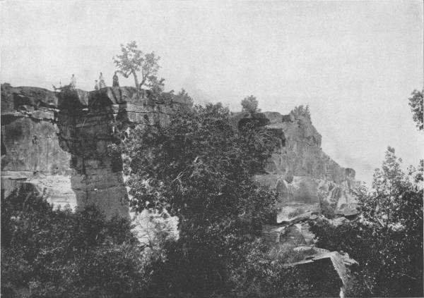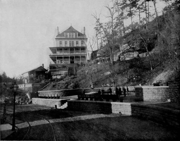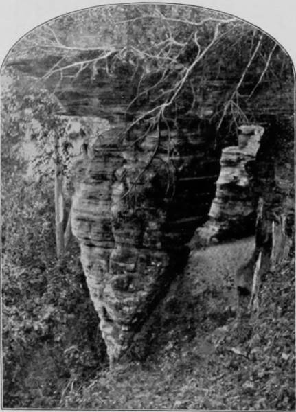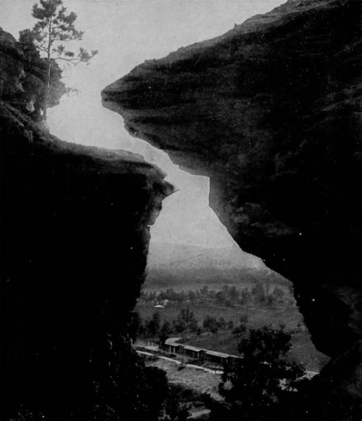 Beyond this is Pluto’s Ravine, where stands Stallasso’s Monument, a large white stalagmite, marked all over with pencil inscriptions, some of them sixty years old, composing an autograph album of wonderful curiosity, containing hundreds of names which to fame are otherwise unknown, and effusions of doggerel poets whose reputations, alas, will no doubt be forever restricted to the limits of this cave chamber. A short distance beyond Pluto’s Ravine is the termination of this section of the Cave, and from this point return is made to the open air. A ramble among the subterranean glories and petrified splendors of Wyandotte Cave was a fitting conclusion to one of the most interesting tours that was ever taken through the picturesque regions of our country; a tour affording so much information, pleasure, adventure, and profit, that the remembrance must forever remain a source of intense satisfaction and delight. It was with feelings of deep regret that we separated after the completion of our work, and each returned to his respective home, to take up anew the old labor which we had laid down when the start was made upon our long journey. During the trip our photographers took five thousand pictures; many of these were taken under unfavorable conditions, and upon development were found unworthy of reproduction. Many others were excellent and well deserving to rank with those which we have here used, but there is a limit to all things, and ours does not exceed the space occupied by the 520 odd views which we have presented; these, however, are fairly representative of the incomparable scenery that charmingly diversifies our native land, a land kissed by the lips of liberty, bounty, and beauty, and blessed with an amplitude of powers, under the exercise of which the largest freedom, benefits and sovereign rights are obtained for the whole people.