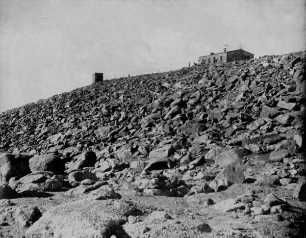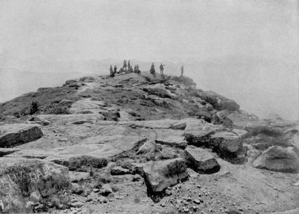After gaining the summit our party had a still better view, for 30a bright sun had now come out from behind clouds that had before obscured his rays, and so completely dissipated the misty atmosphere that the panorama was greatly increased. They were lifted so far above the Front range that beyond the divide there broke into view, in the far southwest, the Mount of the Holy Cross, while beside it were the very pale outlines of Jackson Peak, the two almost blending into one.