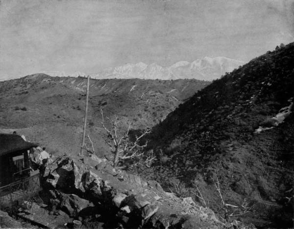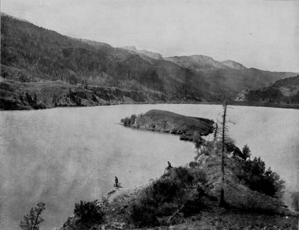 Looking beyond the lake we perceive, some seven miles away, the famous Argenta Pass, the summit of which is reached by the highest wagon-road in the world, and from this elevation an almost boundless and marvelously picturesque view may be had, stretching away to the west as far as Holy Cross Mount, and eastward to the prairies of Kansas.