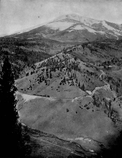 The picturesqueness of the route now changes from wild scenery of lofty mountain and the dark awesomeness of deep cañon, to a park-like landscape, through tillable lands, and on to Silver Plume, a great feat of mining engineering, and beautiful beyond description. Gray’s Peak rises like a giant phantom a few miles beyond, and becomes a charming signet in the ring of park and town of Graymont that lies near its feet.