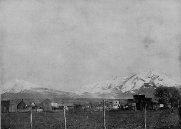 At this great height the snow lies packed in the deep crevices all summer through, while upon its borders may be seen beautiful flowers nodding their bright heads in the delightful wind that plays about the peak. Now we go down the mountain side with brakes set, marveling all the way at the natural wonders which have been strewn by some Titanic hand along the route. There, on the right, are the Palisades, which might be called sculptured rocks, so graceful and artistic that they appear to be the creation of the great Phidias, or pupils of his school. Further on lies Quartz Valley, like a pearl nestling in depths far below the angry waves of giant mountains. Now we cross Quartz Creek, where nature laughs with blossoms and fruitage, through Uncompaghre, around Hair-Pin Curve, with the Fossil range to our right, by Juniata Hot Springs, and at length arrive at Gunnison. We are now in the midst of the most magnificent mountain scenery, and in the heart of a great mining country, where there is bustle above ground and activity and visions of amazing wealth underneath. The town is at an elevation of more than 7,000 feet, but many peaks rise high above it, from which extensive views may be had of the Elk Mountain, San Juan and Uncompaghre ranges, while to the southwest a beautiful valley stretches away to mark the devious path of the Gunnison River.