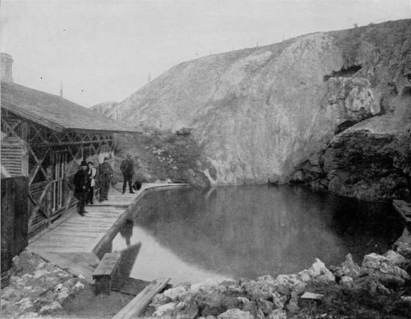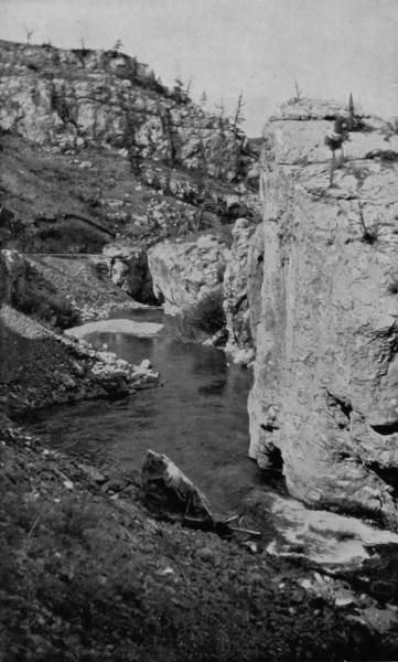 We tarried a short while at Fort Collins, then set off for Mason City, eighty miles distant, the road to which leads through the world-famous Cache La Poudre (Powder River) region. After leaving the south fork of this stream we passed Monitor Peak, crossed the Big Laramie, and brought up at Medicine Bow range. North Park proper lies west of the range, but the physical features of the immediately eastern district are almost identical, and to traverse the whole would have required more than a month. The park is an elevated plain 9,000 feet above sea level, and embraces an area of about 2,500 square miles. Properly speaking, it is a fertile valley enclosed by spurs and branches of the Rocky Mountains, and is so seldom visited that there are as yet no resorts for travelers, and the stage is a poor reliance for reaching the most interesting districts. We also experienced insurmountable obstacles, which compelled us to abandon our purpose of making a tour of the park. The only possible way of going through the district and to chief points of photographic interest (pardon the expression) would have been by horses, and these were not procurable because the country is devoid of settlements; besides, we were unprovided with camp equipment. We saw the mountains rising on every side into jagged spires, and occasional lakes nestling on their bosoms, but they were inaccessible to us, and after making so long a journey we were compelled to return without accomplishing anything worthy to be narrated. Photographs of some mineral springs bubbling up icy-cold in stony basins, wide stretches of landscape, hemmed in by a wall of mountains, and some fine views of scenery along the Cache La Poudre, was all the reward we had for days of uncomfortable traveling, much of which was done on foot, and on horses borrowed for short tours. We traversed enough of the district, however, to satisfy us of its beauty and fertility, and that the region was a vast game park, in which mountain sheep, bear, deer, pumas were numerous, and ptarmigan abundant. We caught sight of several wild sheep and had a far-away (not too far) look at a cinnamon, or grizzly bear, we were not able to positively decide which, and not being equipped for entertaining game of that character were indisposed to permit curiosity to supersede judgment.