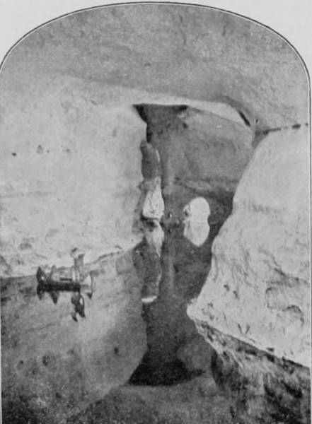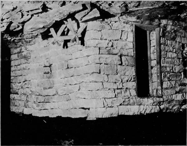 OLD STONE HOUSE, MAMMOTH CAVE.—The dry atmospheric condition of the galleries of Mammoth Cave led to a belief some forty years ago that a continuous residence within these dark precincts for a definite period would be beneficial to consumptives. The experiment was therefore made by building a number of stone houses or huts at a point about a mile within the cave, in which a colony of invalids took up their abodes and lived in deep seclusion until it was demonstrated by the death of several of the sufferers that they derived no benefit from the surroundings. Relics of two of these stone huts still remain, but they exist now only as curiosities, no one having spent a night in either of them for many years.