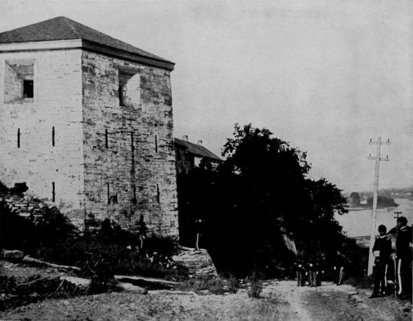 In the earlier centuries a wall extended across the peninsula, which protected the city from attack on the north side, but nothing now remains of this defence except the old city gates, at the head of St. George street. These are massive square towers fifteen feet high, pierced with loop-holes, and at the base of each is a sentry-box, which the guards occupied when on duty.