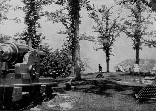 From Fredericksburg our route was northwest to Appomattox and thence east by way of Richmond to Fortress Monroe, on the peninsula. We were a little disappointed to find the site of the culminating event of the war destitute of any special feature of interest of either a natural or artificial character. The scene of surrender is not even marked by a monument, and the country thereabout is a pale and somber stretch of poorly-cultivated lands. Yet there are exceptions; for occasionally the monotony of cabin and broken fence is relieved by prolific tobacco-fields, pretty towns, and inviting manors adorned with colonial houses that still preserve their old-time air of comfort and Southern hospitality. Virginia well deserves the title of the Dominion State, not only because she is the mother of Presidents, but because she is also distinguished as the native state of many of the greatest men and women born on American soil. “To be a Virginian, is to be a gentleman,” has passed into an adage; and the country is proud of her for a hundred reasons, which reference to history will explain. If her soil is not the most fertile, yet her legacy is the richest, for she gave to the world such men as Washington, Madison, Jefferson, Randolph, Clay, Lee and a thousand others whose names and deeds are alike imperishable. Fortress Monroe is reached by the Chesapeake and Ohio Railroad, over which route we traveled from Appomattox. It is located at the point of a peninsula, formed by the Fork and James Rivers, which projects into Chesapeake Bay where it joins the Atlantic. The situation is particularly favorable for a Government fortress, and its natural and commanding advantages have been fully utilized, for it is the largest and strongest fortification in America. Hampton Roads separates the point of the peninsula from the opposite land. This body of water is about five miles wide and forms the outlet of James River. It was in the Roads that the most famous of modern naval battles, between the Monitor and the Merrimac (Virginia), took place, March 9, 1862. Two miles below Fortress Monroe is Old Point Comfort, a very popular resort and the seat of the National Soldiers’ Home. Newport News is nine miles above the Fortress, on Hampton Roads; and Yorktown, the place of Cornwallis’ surrender to Washington, October 19, 1781, is twenty-five miles north, on York River, both places possessing great historic interest for events of which they were the scene during the Revolutionary war.
