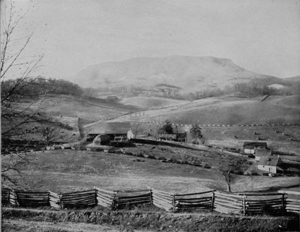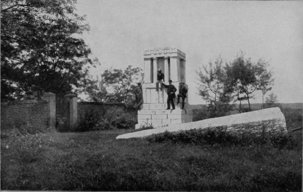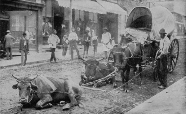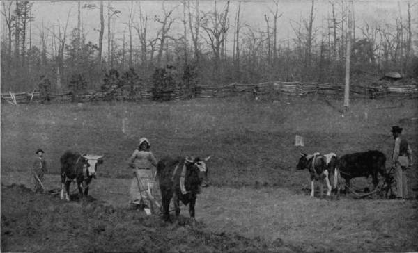From Gettysburg our route was southwest to Washington, and thence by way of Fredericksburg to Appomattox. From Washington the Richmond, Fredericksburg and Potomac Railroad runs through a sterile section, unrelieved by either picturesque scenery or smiling field, so that a part of it has long been known as the Wilderness, famous, however, as the scene of many great battles in 1863-4, many traces of which are still to be seen from the car windows of passing trains. Fredericksburg is distinguished also as the vicinity in which Washington was born, and where he spent the greater part of his youth. Here it was also that Washington’s mother lived for a long time, and died in 1789. A monument erected in 1883, in the suburbs of the town, marks the place of her sepulture. Twelve miles beyond Fredericksburg is the battle-ground of Spottsylvania Court House, where Stonewall Jackson received his death wound, May 2, 1863. Indeed, the region for fifty miles thereabout is still scarred by the strokes of contending armies delivered thirty years ago, and cemeteries in which repose the heroic dead of both Union and Confederate are numerous, marked by many monuments to attest the appreciation of the living for the sacrifices which were endured in those dreadful years of the sixties. But if the country is somewhat barren, and gruesome with reminders of fratricidal strife, it is not entirely destitute of the phases that lend cheerfulness to life. Here is essentially the land of happy negroes, where poverty abounds with joy, for absence of responsibility is contentment of mind with the colored race. At the depot there is always a swarm of pickaninnies eager to scramble for pennies thrown to the crowd, and the most comical scenes imaginable occur at these tussles, for the little darkies themselves, in an array of all sizes and shades of black and brown, a company of tatterdemalions that would put Punch and Judy to rout, are ludicrous enough to make a goat laugh. The street-scenes of villages near-by, as well as in the suburbs of Fredericksburg, are equally whimsical, presenting, as they often do, human nature in its most grotesque aspect. Horses are rarely used by negroes for draught purposes; mules more frequently; but bulls, cows and yearling calves are the chief dependence, and carts the popular style of conveyance with these happy-go-lucky people. There is no need for haste, and the loads are never large, hence a yoke of cattle are as handy as a span of horses, and preferable because slow movement allows more sleep on the way. The sun makes the tobacco grow, and the rain makes music on the cabin-roof; so rain or shine the darkey’s heart is always light and the future is hidden from him by a veil of present delight. Such sights teach the value of content, even if they do offend ambition, and in them the philosopher’s stone has its hiding-place.