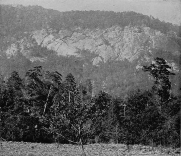 On every side there were evidences of glacial erosion, not only in the form of bowlders and debris, but in lateral moraines, where the glacier had left deposits, and in gorges where great granite blocks had been tumbled, over which in places the water cantered and fell in beautiful sheets. In one place, towards the base, were found many small aspen trees cut down, and most frequently the trunks were divested of their bark, and the tender limbs were missing. Investigating the cause, it was directly discovered to be the work of beavers, several of whose dams were perceived in a creek that ran through a beautiful meadow land, but no one of the party was able to catch sight of the wary animals.
