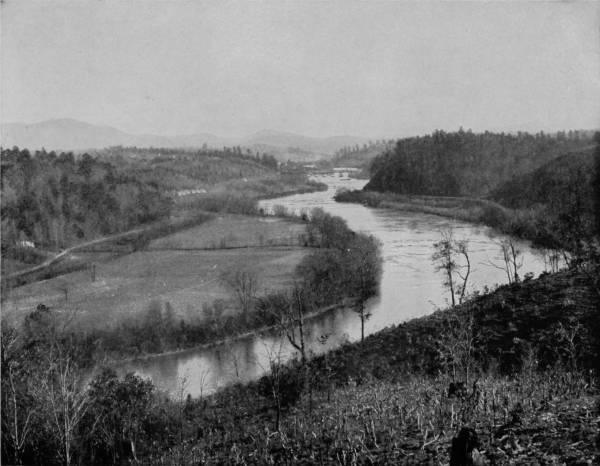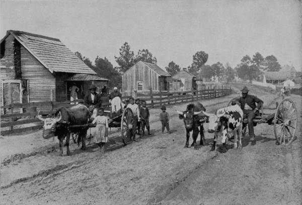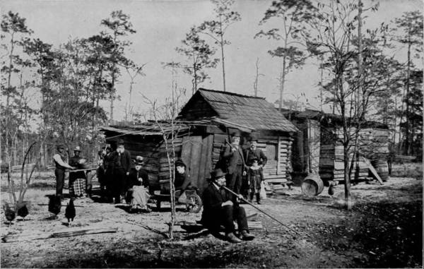 The country district about Savannah is somewhat similar in appearance to that of Western North Carolina, except that its mountains are not nearly so high. The soil, however, is practically the same, as are the social conditions; and hence the constant reminder of that section which we have already described. The old log-cabin is a familiar sight in Georgia, often vine-wreathed, and showing signs of great antiquity, with roofs of clap-board, upon which the rain patters like the long-roll beat of a snare-drum. The picture which we present is typical of this class, and an example as well of rural simplicity. Homely, battered by time, and affording few comforts, yet in such cabins greatness has often had its birth, nor scorned such humble nativity. How many men of high estate lie down in the drapery of fine linen and, when night has folded the earth in her sable arms, think of the old cabin home in Georgia; of the long time ago; of the bubbling spring in the hollow and the gourd that hung by it; of the grape-vine swing, and the cows mooing in the pasture; of father and mother, and the graves on the hillside. And there is a sigh from the heart. The old time was the flush of life’s morning; it is growing evening now, and the shadows are creeping up the slopes. Soon the present will be the “old times” to our children. How many men who have achieved greatness would exchange their possessions and positions for youth and the old cabin home as they see it now in their dreams! Many, yes, very many.