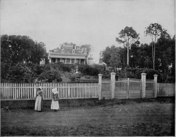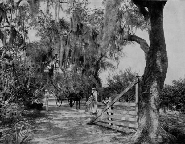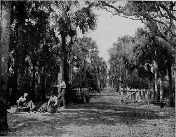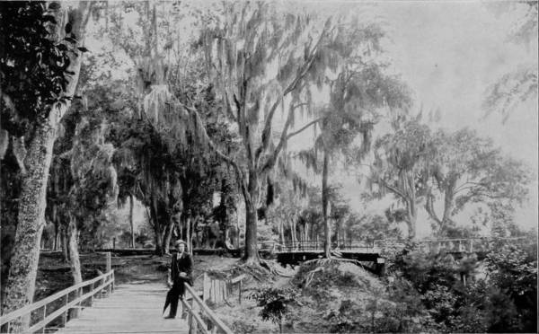 It is about seventy-five miles from St. Augustine to Ormond by the Jacksonville, Tampa and Key West Railroad, one of the branches of the Plant System, whose terminus is Daytona, five miles below Ormond. Indeed, nearly every road in Florida is the property of the Plant company, which has proven a factor of incalculable benefit to the State, and has reaped correspondingly great reward. Ormond is located on the head of Halifax River, which is a part of the Indian River Lagoon, connected by the Mosquito Haul-Over, or canal. We are now in the sub-tropics, and among the paradisiac delights of a marvelous sun-browned land, where the mocking-bird opens the matin competition in the college of vernal hymns, and the palmettos are vocal with the softly stirring breeze. The landscape is a dreamy haze of incomparable loveliness, where a feast of flowers is perpetually spread, and the voice of peris may be heard down under the green waters of a murmuring sea. Only a thin stretch of golden beach lies between the mainland, on which Ormond is located, and the ocean, so near that the billows are distinctly heard beating against the shore. Along this water-front of lagoon and sea are gleaming sands so hard that step nor wheel make any impression, and so inviting that nymphs might make it a playground. West of the village is a typical hummock of tropical growths, penetrated by a glade that is embowered and sweetly shaded by massive oaks gracefully festooned with pearl-gray mosses, and palmettos that flaunt their tangled, rustling branches before the beaming sun. Hereabout, too, are groves rich-laden with fruits as golden as those that were plucked by Hercules in the garden of Hesperides; where the orange and the banana bend beneath the weight of their own deliciousness, and pour out their honey to the bees in rich extravagance.