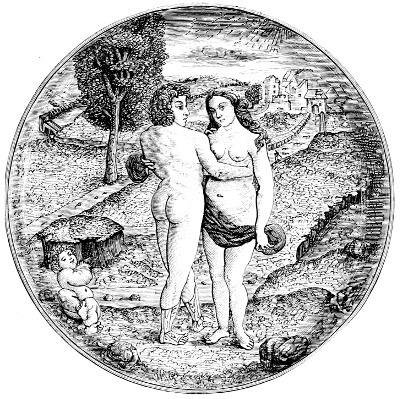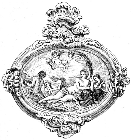 Many of the line engravings in the books of the above period show a mixture, on the same plate, of pure line engraving and etching, the latter being a process in which the lines of the design are scratched into the metal plate, which had been previously covered with a wax preparation, and the lines thus exposed are bitten deeper by an acid solution into which the plate is immersed.