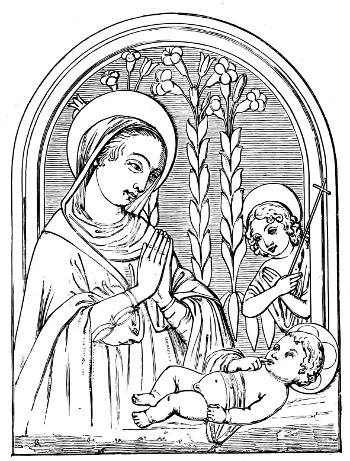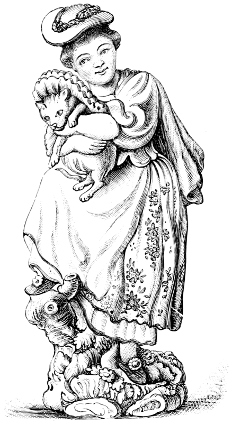 The pictorial illustration in black and white was due to the development of copper-plate first, and steel engraving afterwards, as new methods for book illustration. These processes were developed very much in Italy and France at the beginning of the eighteenth century, and in England their use in book illustration might be said to extend from about the middle of the eighteenth to the middle of the present century. This period embraced that of the publication of a type of English books of essays, poems, and short stories, known as Anniversaries, Amulets, Annuals, Keepsakes, Souvenirs, &c. These books were filled with 403beautifully executed line engravings of landscapes and figure subjects, and most of them were of the highest order of technical skill. The period of their existence was from 1780 to 1830.