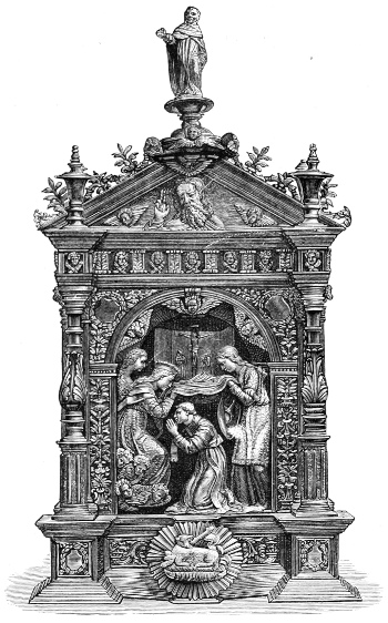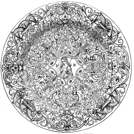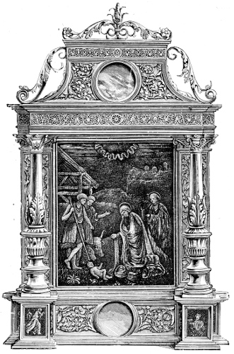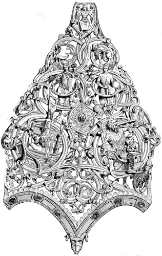 Fig. 316.—Cover for a “Book of the Hours,” designed by Geoffry Tory; French, Sixteenth Century.