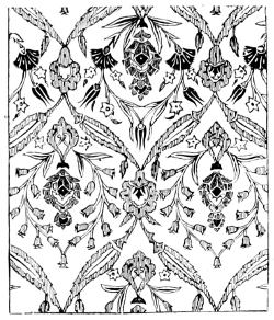A pupil of his—Mr. Walter Crane—whose work is so well known and admired in the present day, has designed some fine decorative work for book illustration. His children’s books are good examples of colour and design, but perhaps his own poem, “The Sirens Three,” where he has designed and executed the lettering and beautiful decoration, best fulfils the conditions of what a decorated page ought to be, and maybe ranked as one of his greatest efforts in book decoration.