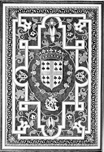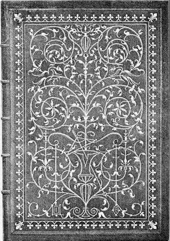 Jean Grolier, Viscount d’Aguisy, was one of the earliest and greatest bibliophiles of France. Though of Italian origin he adopted France as his country, and was Treasurer-General of France when he died, in 1565, at the age of eighty-six. He was appointed ambassador to Clement VII. in the year 1534, and at this time had begun to collect valuable books, that had been chiefly printed in Venice and at Basle. These books were generally unbound copies, but were printed with great care on beautiful paper. On his return to France he employed Geoffry Tory and other designers as well as the best craftsmen in bookbinding to decorate and clothe his precious works. The illustrations we have given are such as are usually found on the Grolier bindings, which nearly always consist of designs composed of strap-work or interlacings and delicate tracery, clothed with Arabian foliage, worked on prepared costly leathers in various colours, and often heightened with gold.