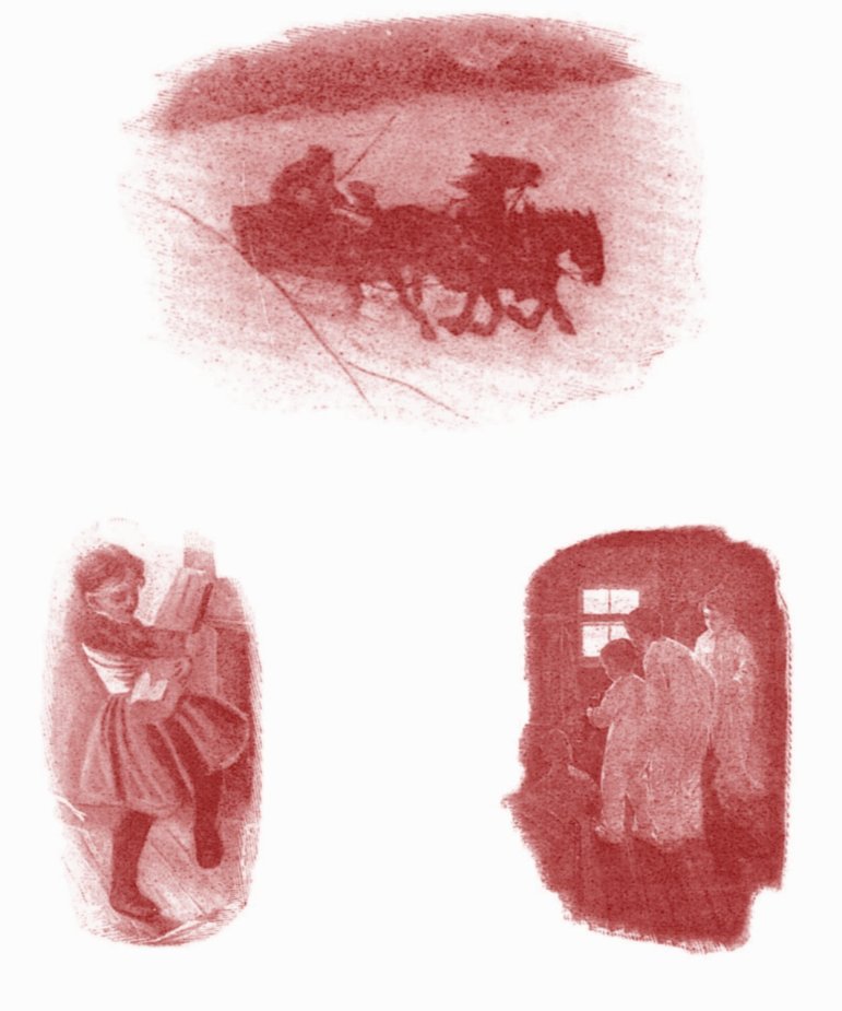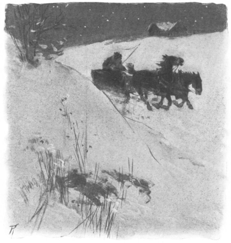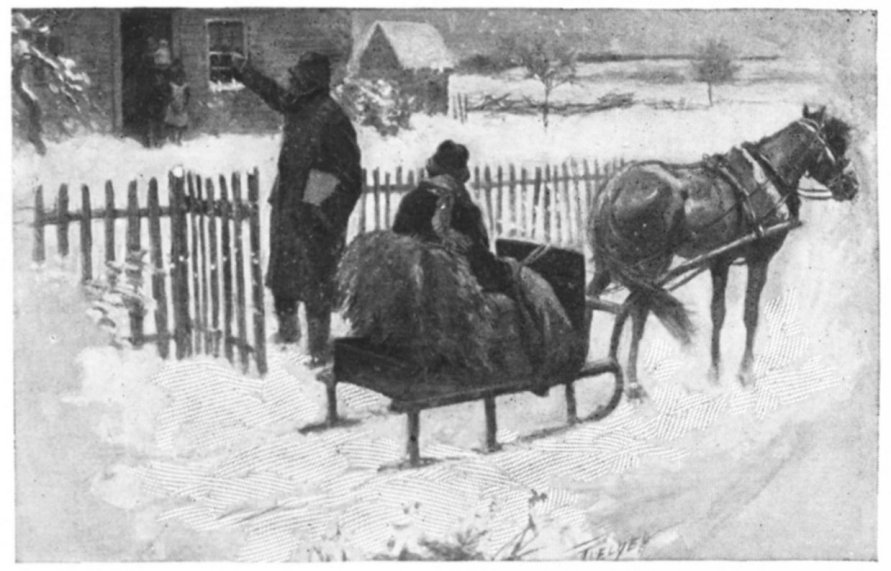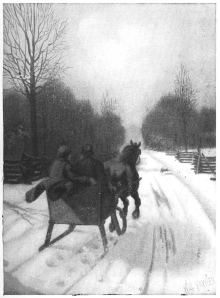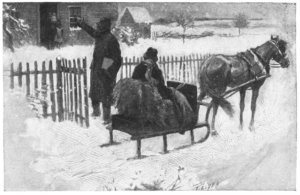 As cotton is, er snow at night!" An' nen, all sudden-like, he say,— "Hush! Listen there! Hain't that a sleigh An' sleighbells jinglin'?" Trip go "whooh!" |