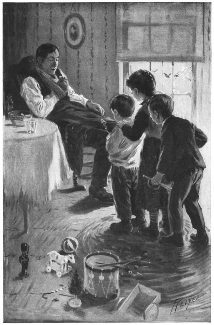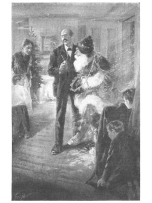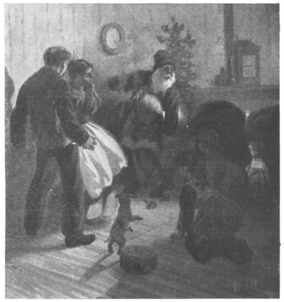 'Cause I hear Santy's voice outside!" An' Bang! bang! bang! we heerd the door— Nen it flewed open, an' the floor Blowed full o' snow—that's first we saw, |