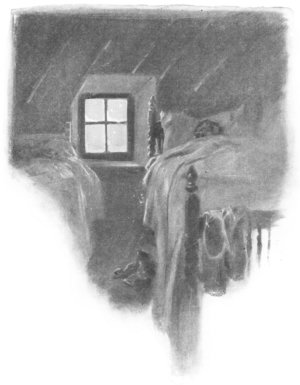 An' tongs a-clankin' down k'thump!— Nen some one squonkin' the old pump— An' Wooh! how cold it soun' out there! I could ist see the pump-spout where |