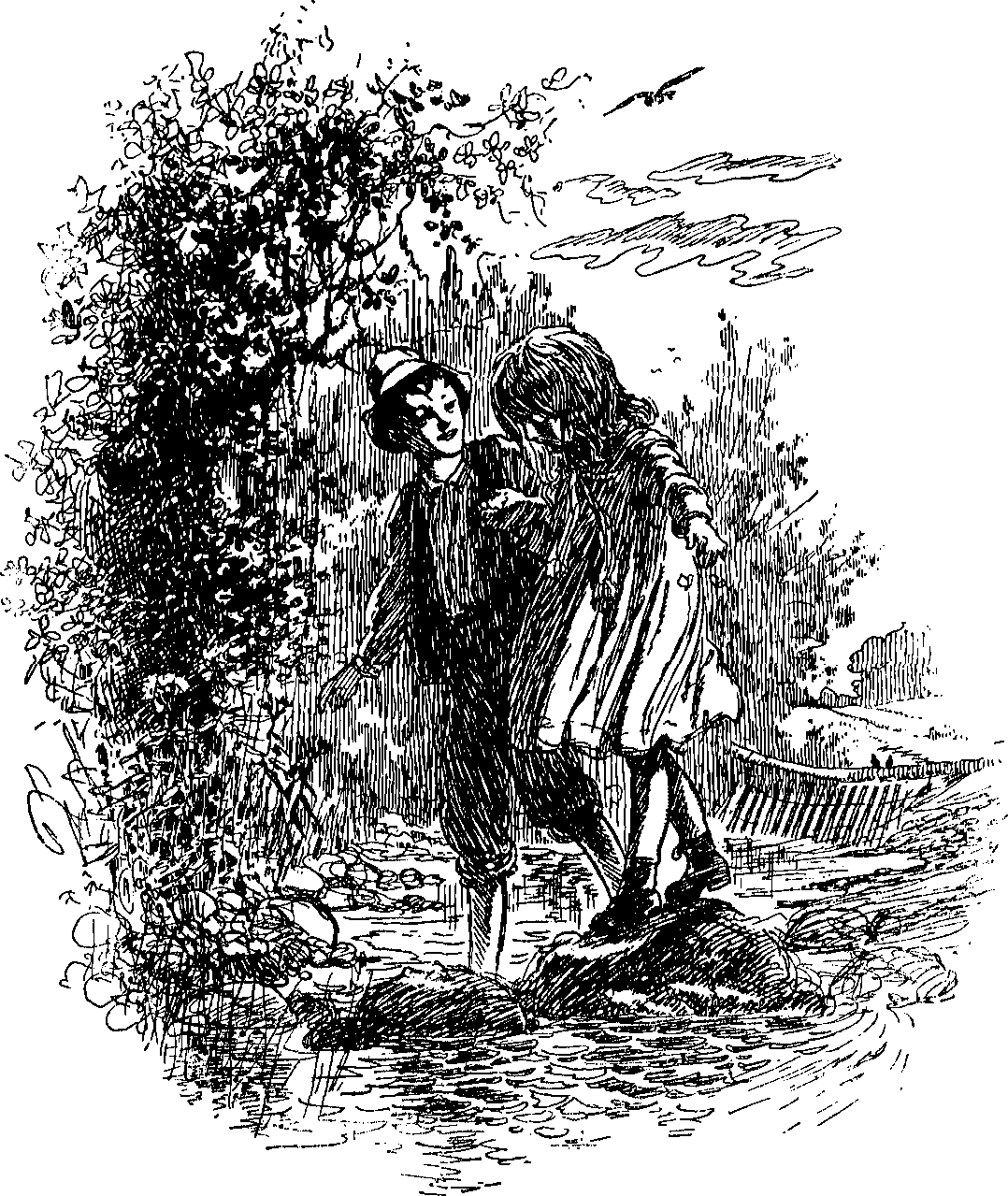 "Along the brink of wild brook-way."