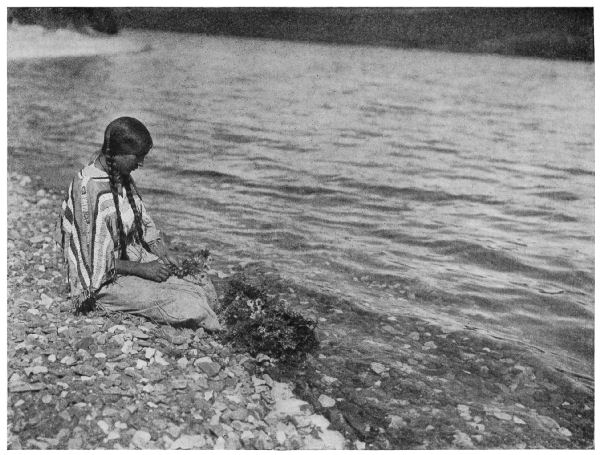 “They had a very rank, unpleasant odor, these feathers; so, when he thought that he had enough of them, he had his woman cover the floor of the lodge with a thick layer of sweet sage, upon which he carefully spread them. He then threw a quantity of sweetgrass upon the fire, and, running from the lodge, the two tightly closed it and kept the smoke inside. This last they did three or four times until the feathers lost their bad odor, and were perfumed with the pleasant [Pg 238] odor of sweetgrass and sweet sage, both perfumes sacred to the gods, as they afterward learned.